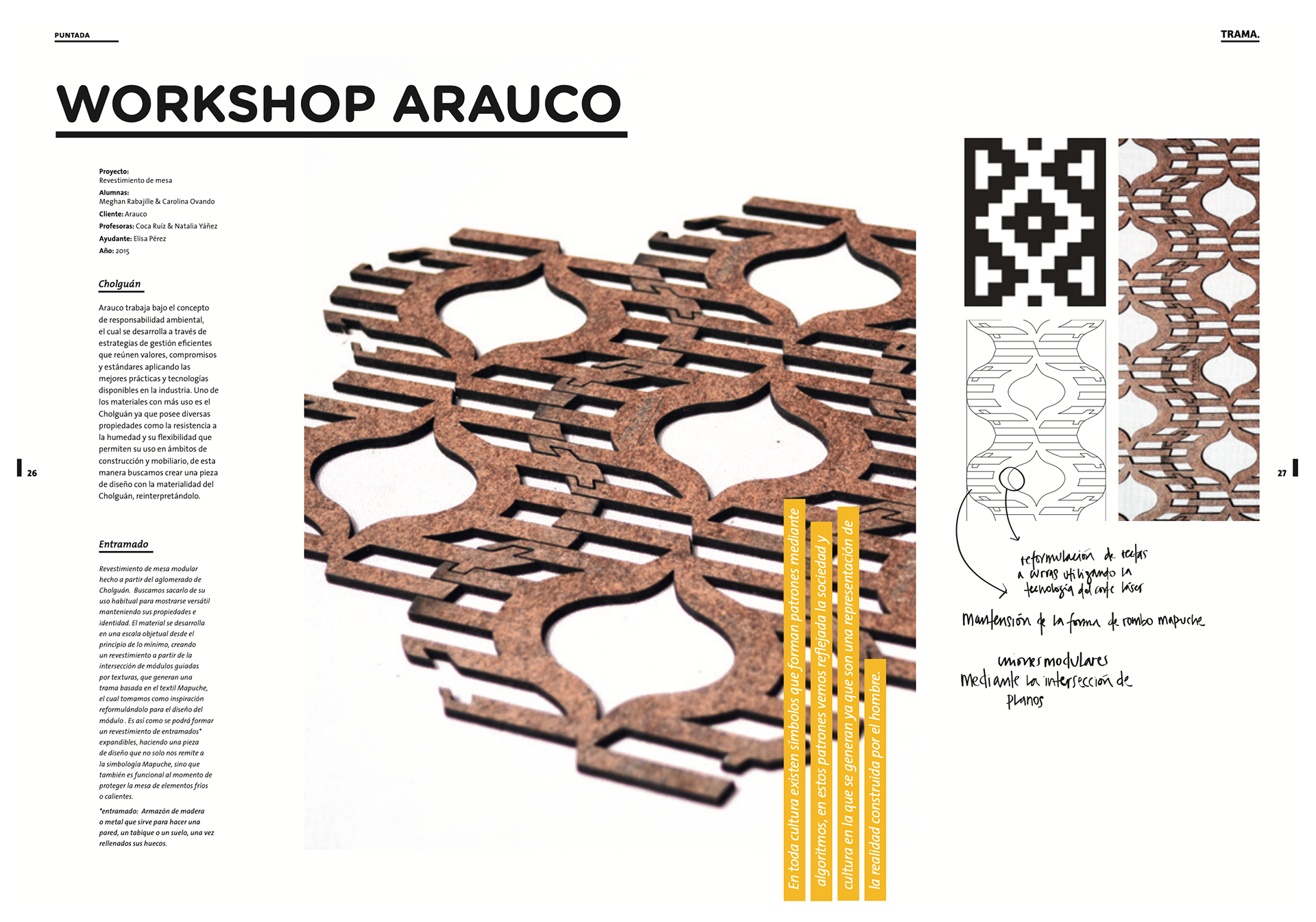 Revestimiento de mesa a partir de la revaloración del cholguán en conjunto a nuevas tecnologías desarrollado en Workshop de Celulosa Arauco junto a Carolina Ovando.